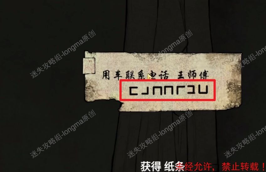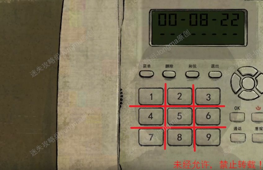 53.点击桌子上的电话,对照密码纸(将电话上的九个数字使用“井”字格模式排列,密码纸上每个图形对照一个数字),得到电话号码:6188942,使用电话拨号,随后晕倒,第三章结束。53