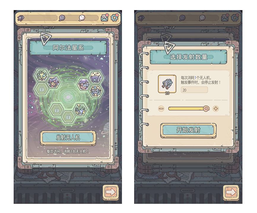通过星域探索功能,蜗爷们对一些文明进行拜访,可蜗是社恐怎么办?在蜗眼睛瞪得像铜铃的期盼目光下,猴子心软的做了妥协~累计发射无人机超过10次后,可进行批量发射操作。