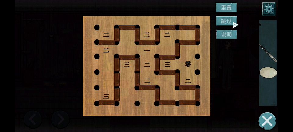 93.向右走观察地上的箱子,将【黑子】和【白子】镶入箱子,根据箱子上的数字536128,对照棋谱得到密码:白白黑白黑黑,按照密码依次点击白子和黑子。93 93.1