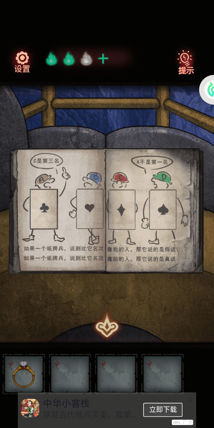 解决这个迷题要先找到扑克牌,在蓝色守卫的脚下就可以看见镊子,去抓娃娃机旁边的井盖就可以用镊子取出扑克牌