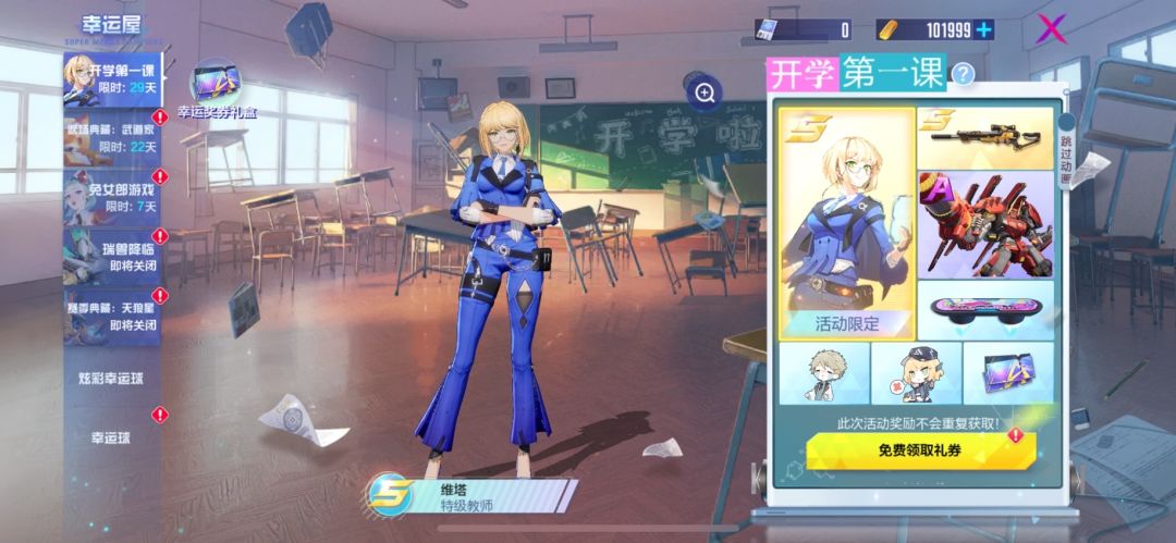 限时奖池“开学第一课”上线,维塔S级外观“特级教师”、热钢A级外观“熔岩”、狙击步枪S级外观“通古斯救赎”、悬浮滑板A级外观“山麓迪斯科”上线该奖池!