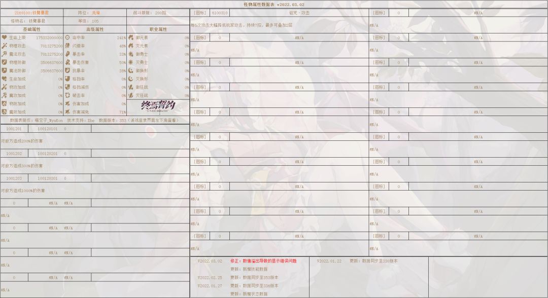 《终焉誓约》怪物数据库V2022.03.02(修复数值错误)
