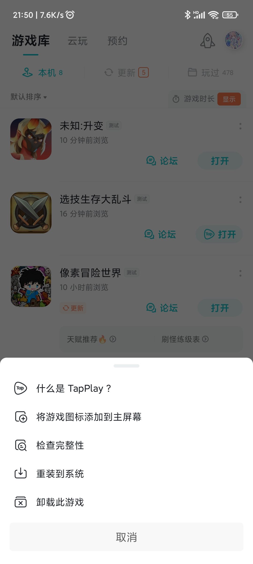 如图页面点击游戏右边的两个点,点击重装到系统即可。