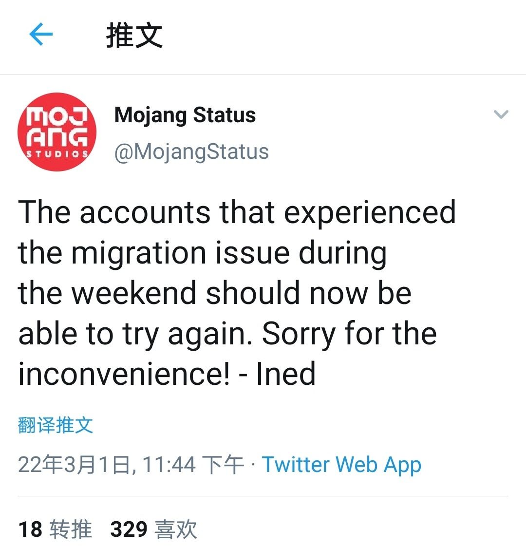 Mojang Status:遇到迁移问题的账号可以再次尝试迁移