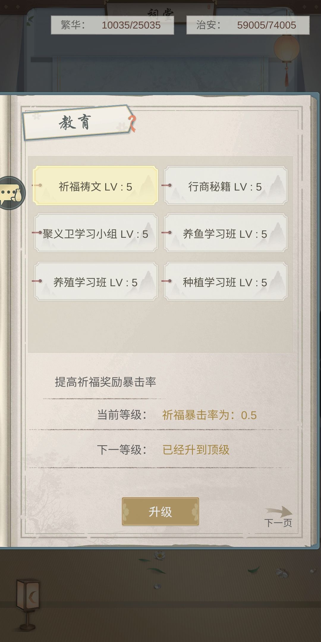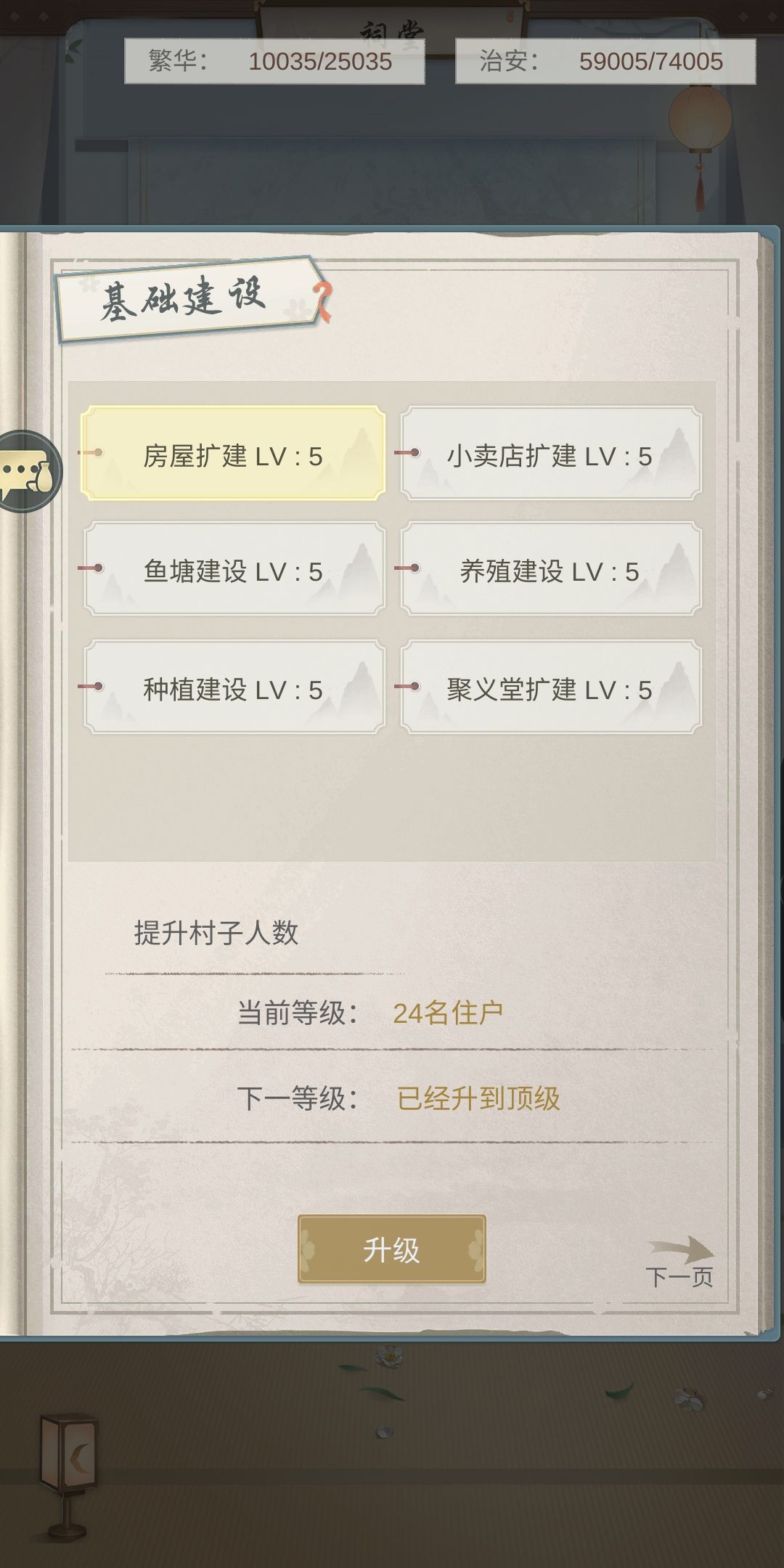 村落设施:均满级