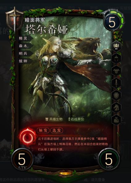 另一个困难点在于精灵部队牌身材较弱,目前能多次重复利用的牌的仅仅只有塔尔希娅,在前期场面交换的时候经常是前排抗伤害后排补输出,导致常常出现前排站不住,后排保不动,经常多换一。许多玩精灵玩家应该都能够发现,在第三个回合开始,手牌资源缺乏而场面也不一定占优,还得为塔尔希娅进场预留暗面哨兵打爆发。