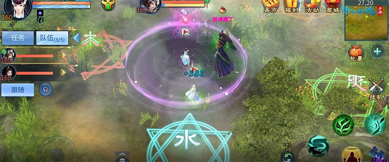 在对抗庖丁时,玩家将遇到“五位调和”阵法。游戏过程中,围绕庖丁的四周会出现金木水火土五个不同颜色的圆圈,与之对应人物头顶将出现酸甘苦辛咸五个不同颜色的字。玩家需在规定时间内根据头顶字体的颜色或者庖丁的提示,踏入正确的五行圈中,即可破解阵法。如果调和不正确,就会获得巨额伤害。玩家可携带医师或侠客,为全团保证血量。挑战成功后,玩家可赢取烹饪包,更有机会获得特级食材。