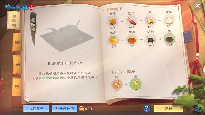 净洗铛,少著水,柴头罨烟焰不起。获得完整烹饪秘方的玩家即刻制作美食。玩家在活动界面可直接参与【三界厨神】活动。玩家每日首次分享烹饪美食可获得1个烹饪包,积极参与活动就有机会获得【西洋厨师帽】限时外观。