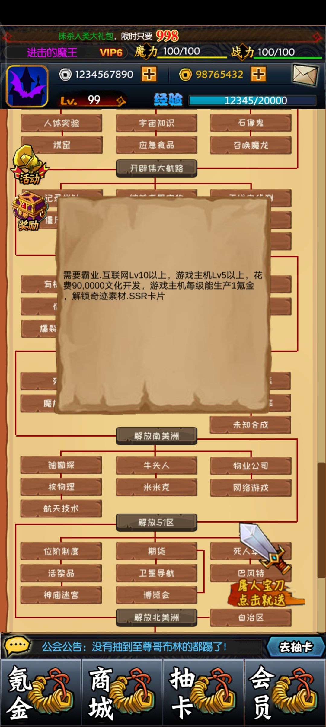 解锁很简单,只要点科技树里的网络游戏或者奇迹里ssr卡,进入网游界面后点击右下角的屠人宝刀即可