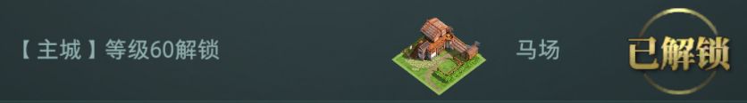 内政厅到达到60级之后,即可解锁建筑马场,建造马场后,主公便可以在马场中进行战马的相关玩法啦。
