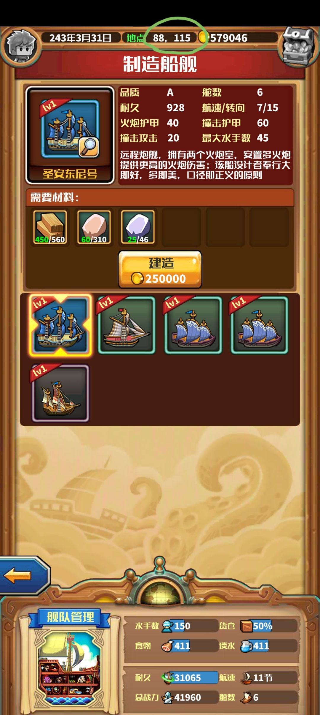 多利用传送,绯红买金银矿然后回宝蓝卖金宝蓝东北卖银,再去迷雾买宝石然后回宝蓝卖,一波一两百万随便整,顺便说一下圣安东尼在日出南科里兰卡!!!不氪必备的炮船,我找两天,,,网上搜不到,一个一个港口找,因为是a穿,所以没去看c港,结果这个几把港口防御c,工业a。。离谱,最后是一个一个图去套位置才找到。。88,115