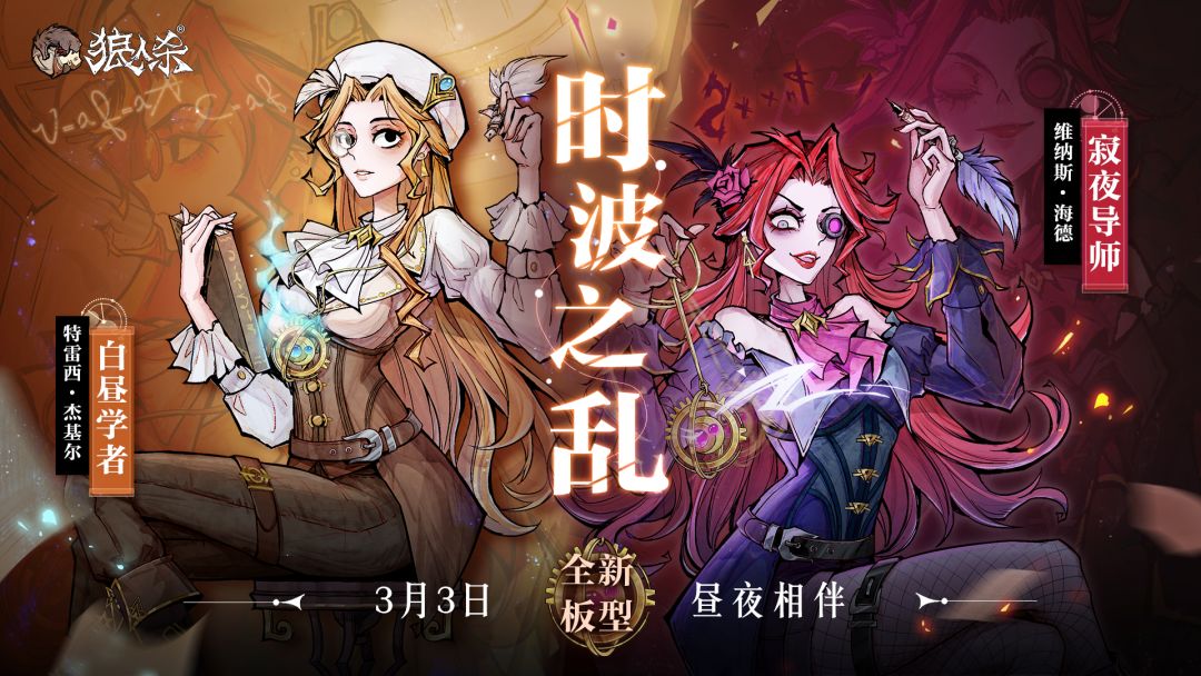3月3日 昼夜相伴,全新板子【时波之乱】正式上线狼村!丘丘跟大家说新角色可是拥有双重人格的漂亮姐姐哦!【白昼学者】博学大方、【寂夜导师】优雅自信,都各有各的特点~你最喜欢她的哪个人格呢?快来评论区告诉大家吧!
