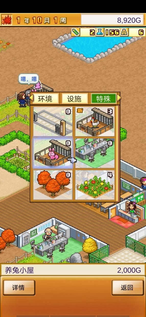 拆完没用的建筑,我们可以额外建造一个养兔小屋,因为第一学期开学我们有俩学生,再招4个属性平均且最便宜的老师,(1000块的月薪,怪不得要呼吁提高教师待遇呢)一共能有6个人,不造一个兔子小屋不太够用,养兔子也是可以赚钱的呢。