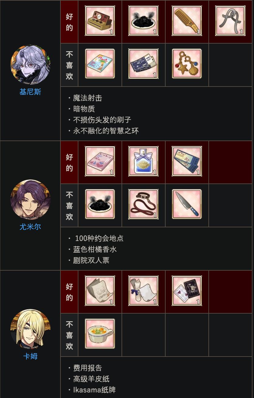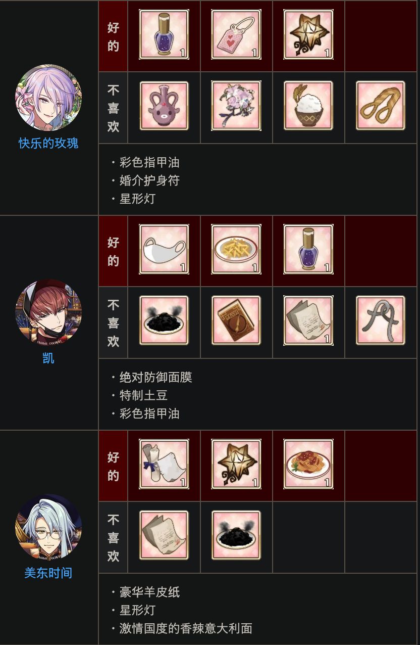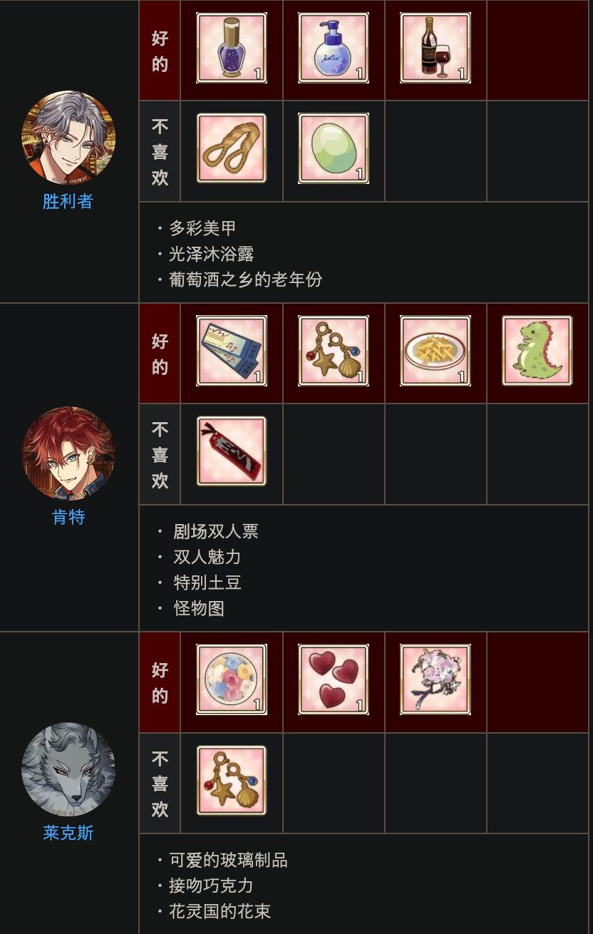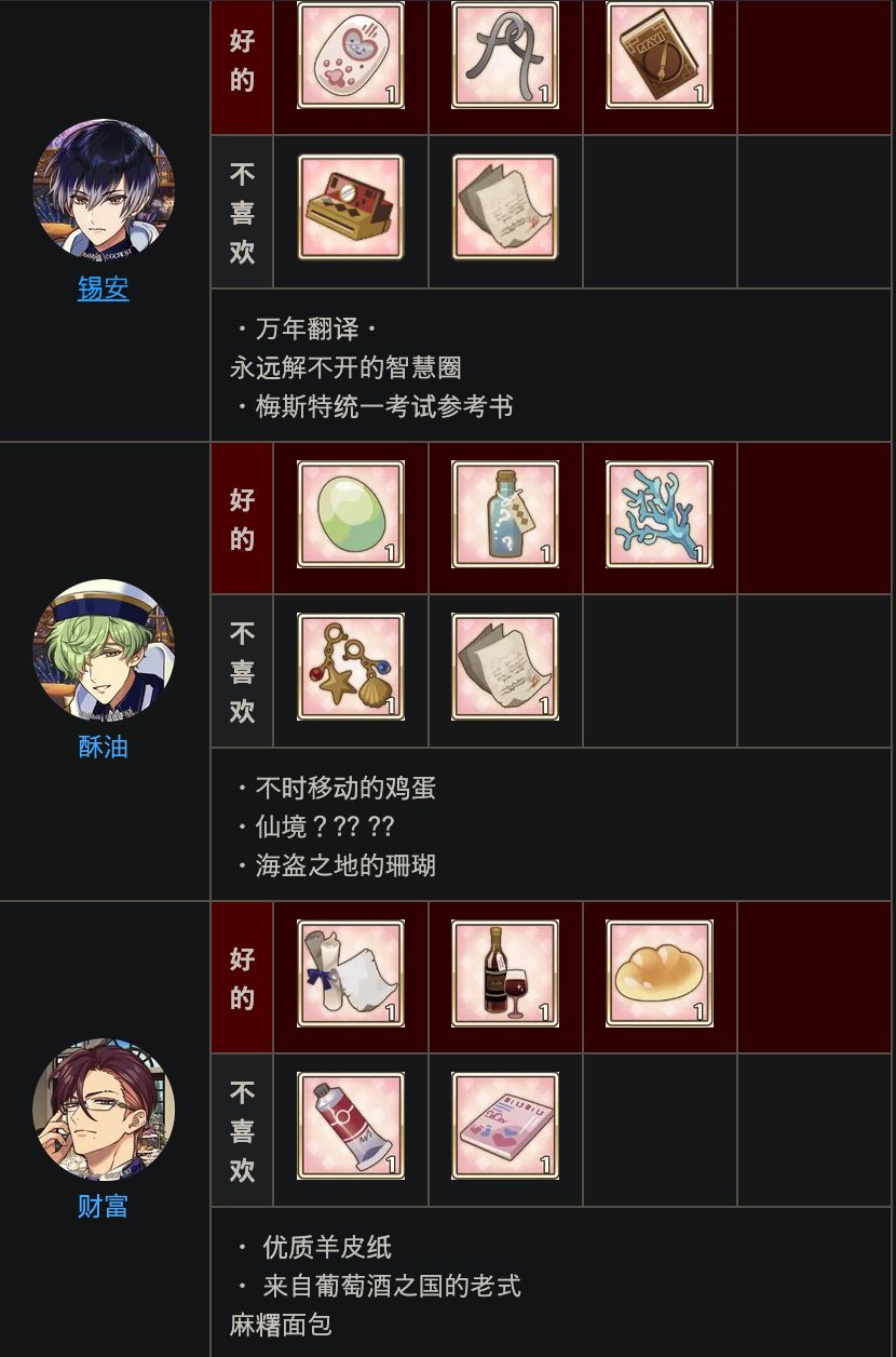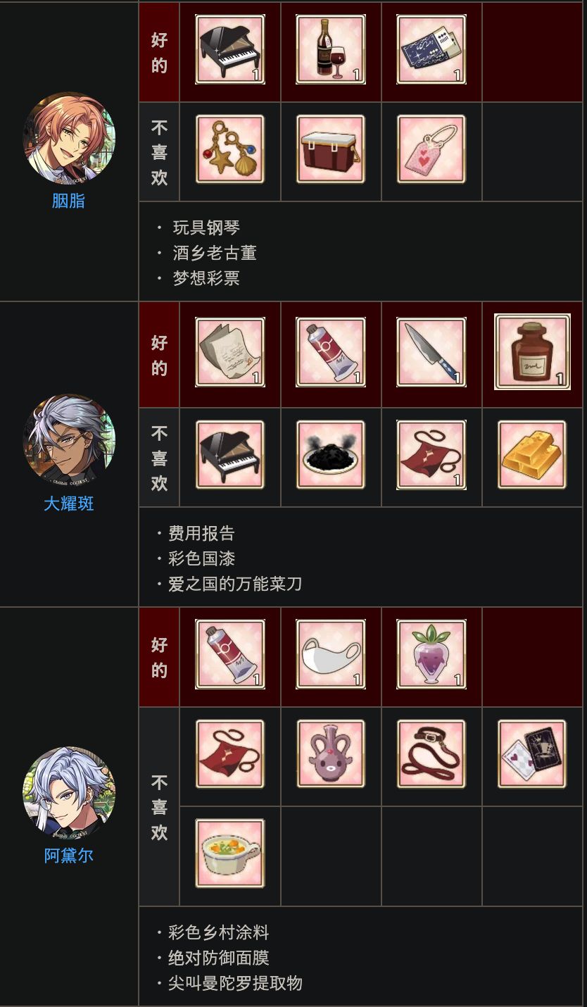 梦黑角色喜爱清单!礼物再也不用担心送错了