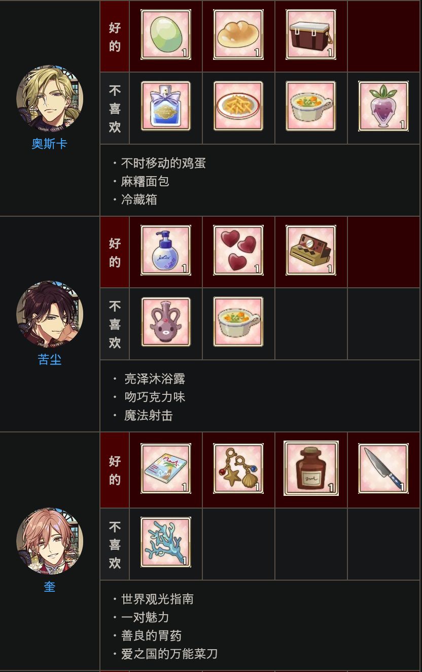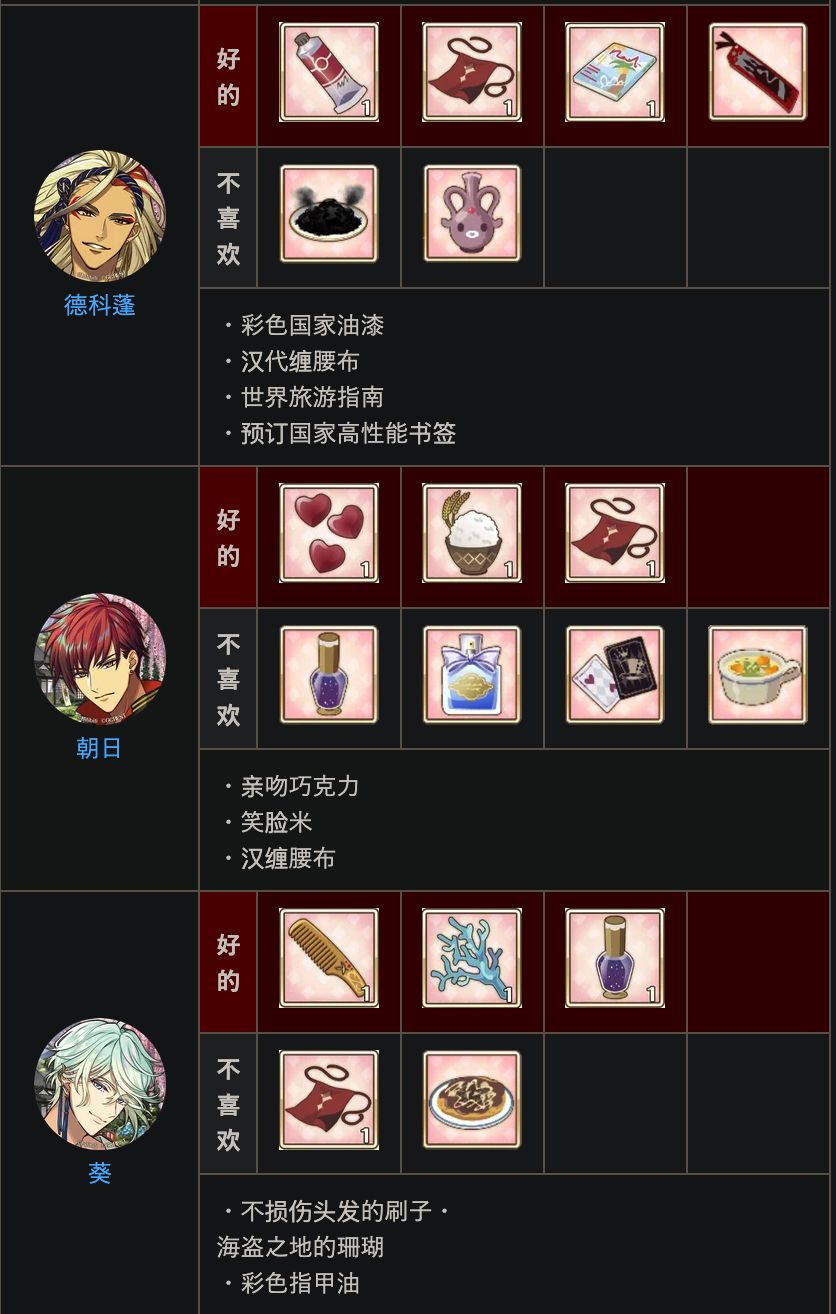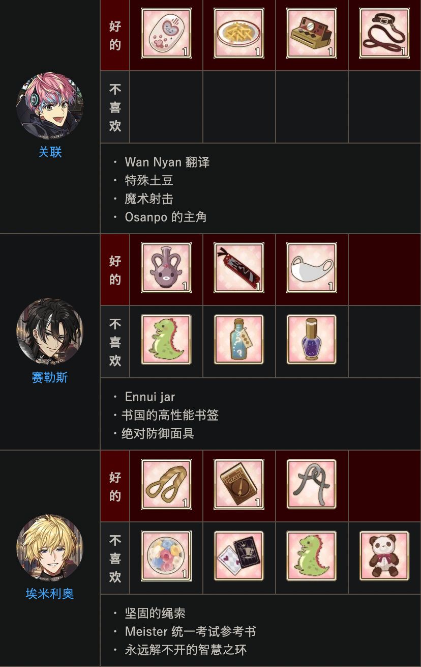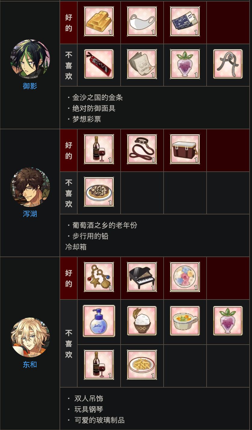 梦黑角色喜爱清单!礼物再也不用担心送错了