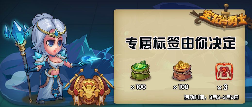 《宝箱与勇士》手游上线运营至今,收获了很多勇士的宝贵建议和支持,现在特邀大家来为宝箱打上“标签”,借标签来表达你对这款游戏的印象。