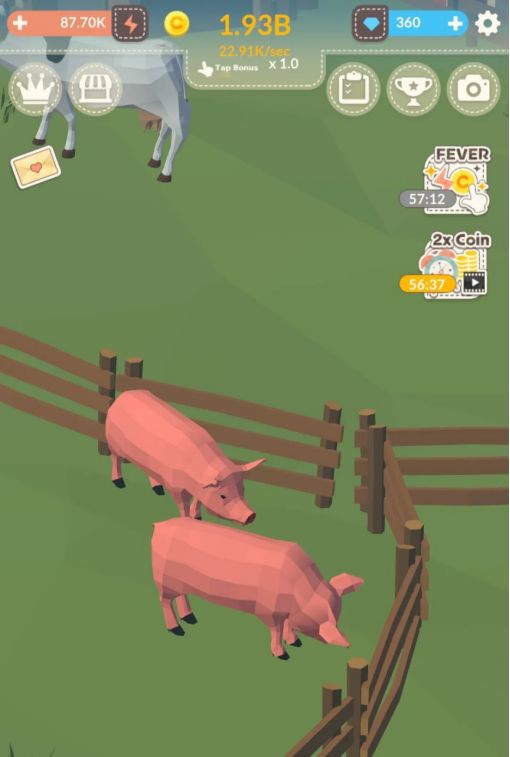 初始进入《动物农场》的主线目标就是不断的赚钱,扩建农场,解锁新的牧场,除了养猪之外,还有养鸡场、养牛场、牧羊场、养兔场等牧场可以建造。
