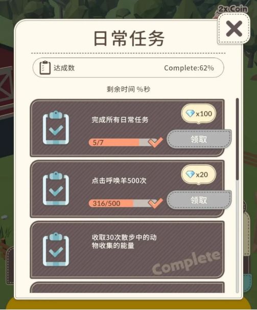 而强化牧场需要使用能量,能量可以通过商店使用钻石兑换,也可以通过散步小动物它们随机产生的能量获得(点击它们头上的小闪电图标即可)。