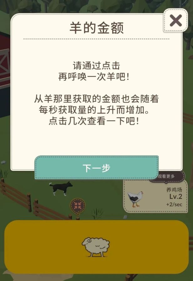 初始进入《动物农场》的主线目标就是不断的赚钱,扩建农场,解锁新的牧场,除了养猪之外,还有养鸡场、养牛场、牧羊场、养兔场等牧场可以建造。