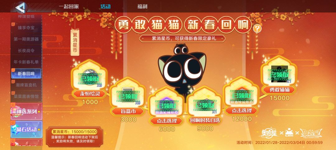 ②左下角的『喵喵大吉』里的奖励都领了吗?