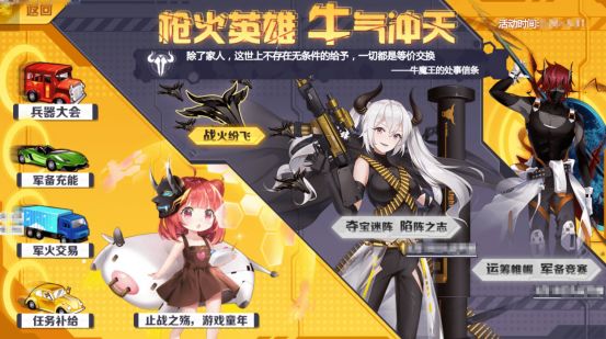 牛魔王在以太城举办“兵器大会”,煮酒论英雄。各次元世界英雄纷纷携宝贝兵器前来,以器会友。指挥官挑选英雄加入助阵队伍,收获人气解锁兵器;能获得宴会特定奖励,并能在作战中享受英雄们的助战加成。