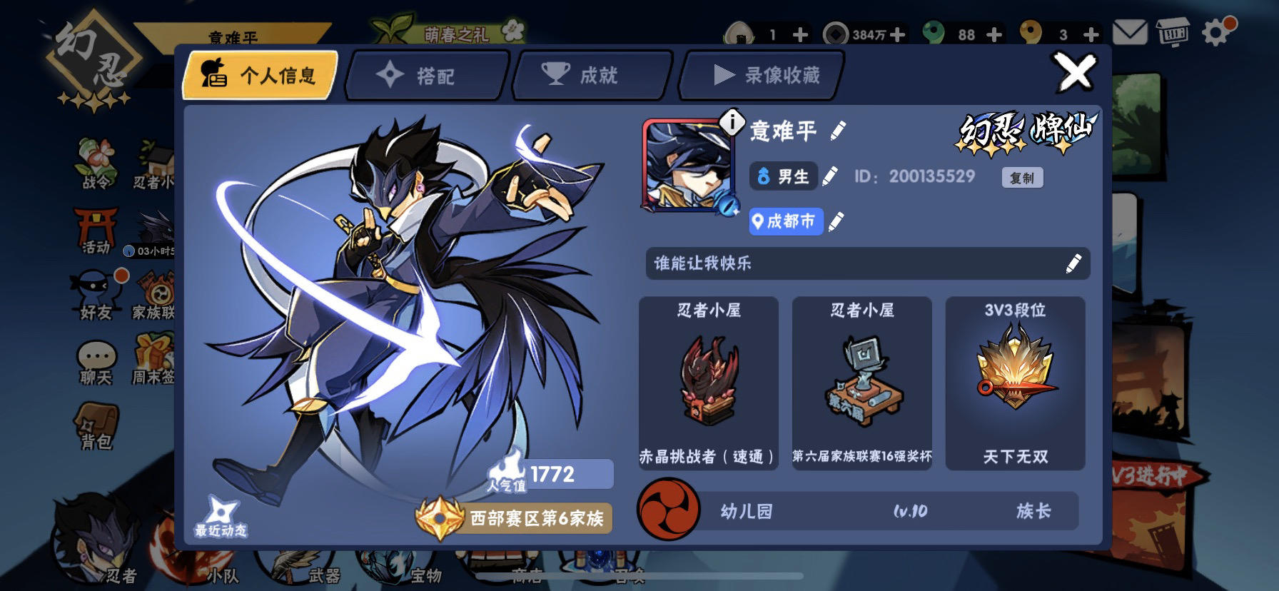 幼儿园的联赛结束了 也在幼儿园打完第三届了 第一届32 第二届16 这届还是32 也没有太难过 游戏嘛 重要的是大家在一起玩 名次这种东西 尽力了就好 谁都想取得更好的名次 但是人也要有自知之明 什么实力就拿什么名次 我在这个游戏一直就处于不温不火的状态 厉害的时候也没有多厉害 菜的时候也菜不到哪儿去 跟家族一样 小人物小家族罢了 没有什么太过分的希望 只希望还在一起玩的大家可以玩的开心就好了