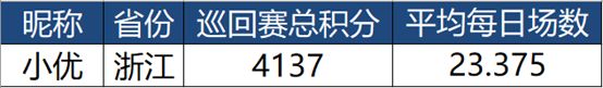 话说8031这个数字是不是已经可以吓到你了?觉得只有靠肝才能取得巡回赛的冠军?NONONO,事实并不是这样,不管你是勤练猛肝,还是天赋异禀,都能在巡回赛取得优异的成绩!