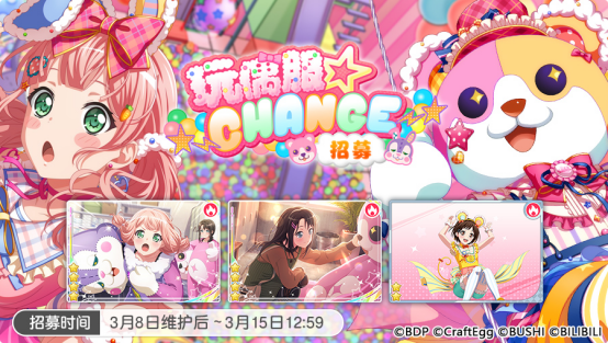 ※ 本招募附赠「玩偶服☆CHANGE 招募贴纸」,消耗该贴纸可在「招募贴纸交换所」兑换相应成员或道具!