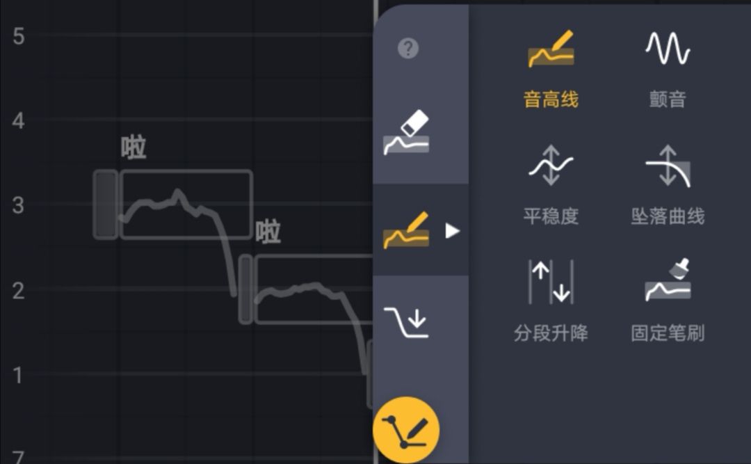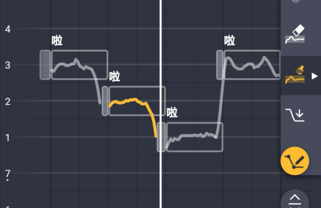 选择“固定笔刷”之后,点击或滑动就可以固定AI生成的音高线(pit线)