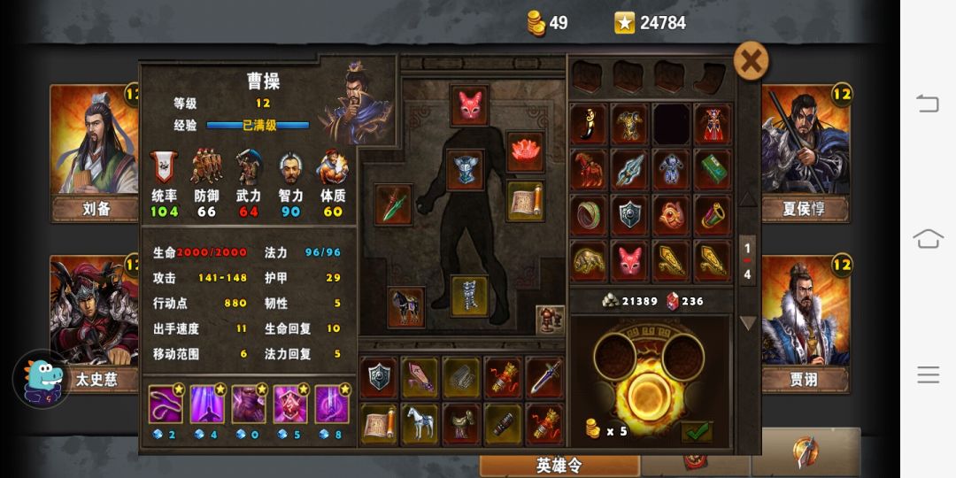 小号要求不高,亮大,高速就行,当然配合雷吕布最好有莲花,特别是好久不出来的6体力副本,在曹操吕布双重吸血加成下,能很好地保证小号的生存。