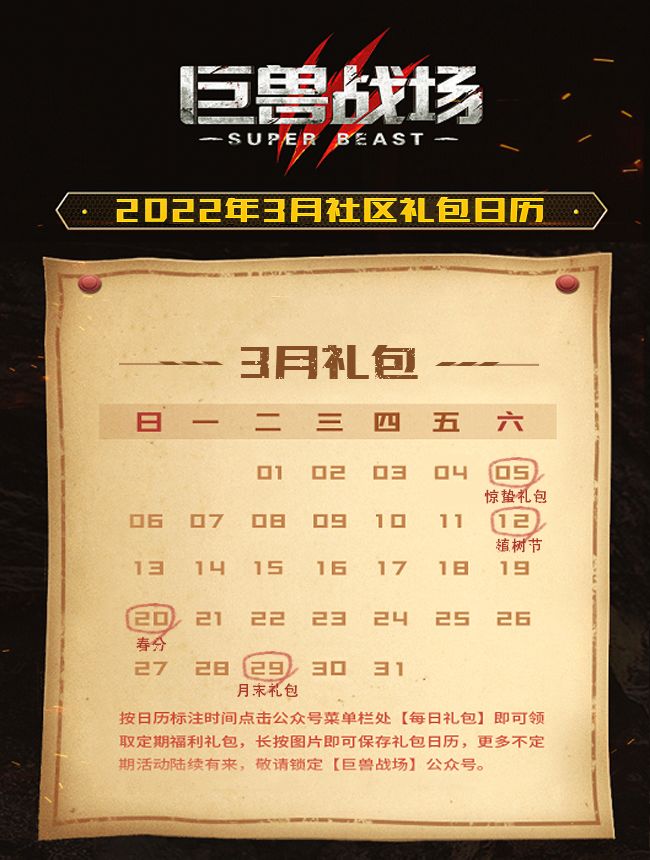 PS:官方公众号也准备3月全月的免费福利礼包月历,详细请往下翻↓↓