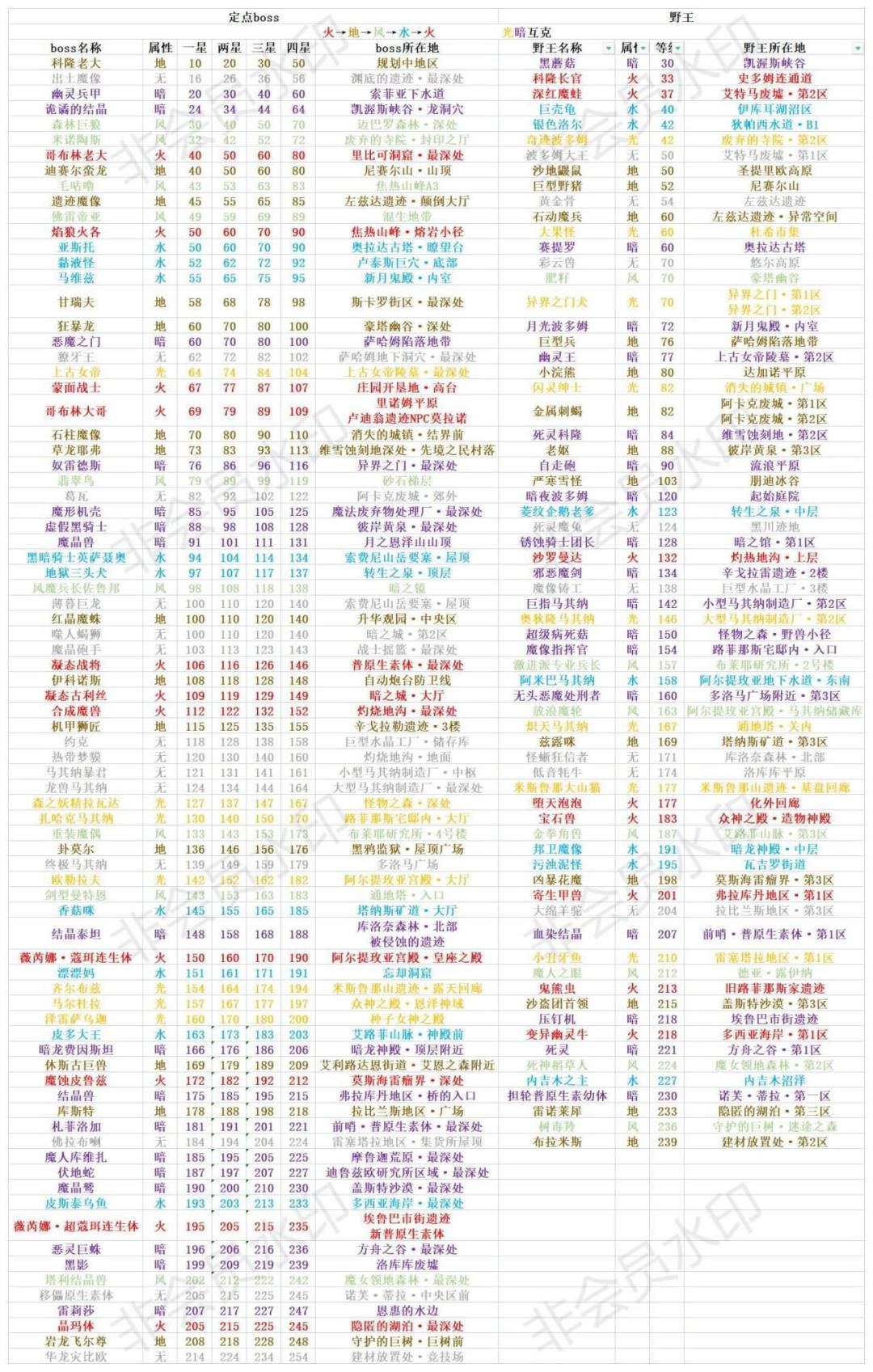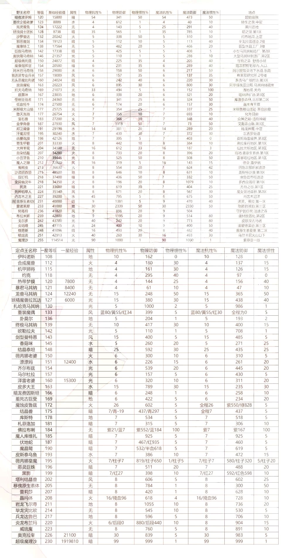 ☀BOSS惯性抗性防御表(防御为一星数值)