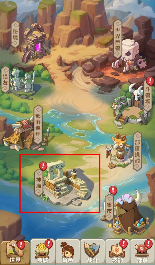 当勇士达到12级时开启神庙玩法,收集卡牌后激活史前大陆奇遇可获取额外属性。