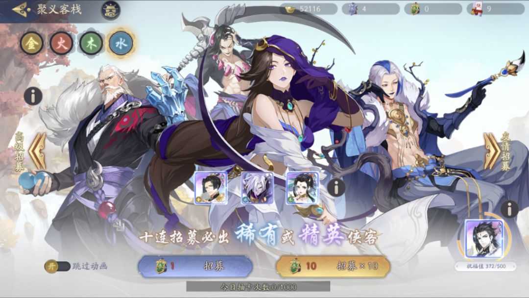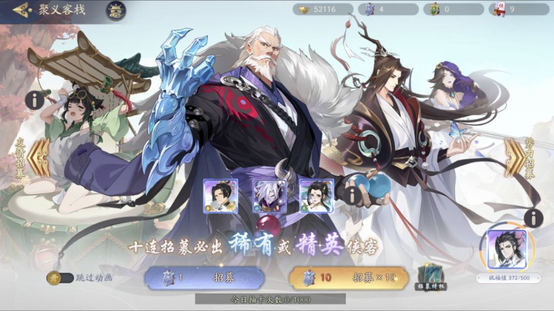 客栈祝福值:直接换取你选取的卡直接兑换(祝福值获取:友情池和高级池都可获取抽一次加一点)