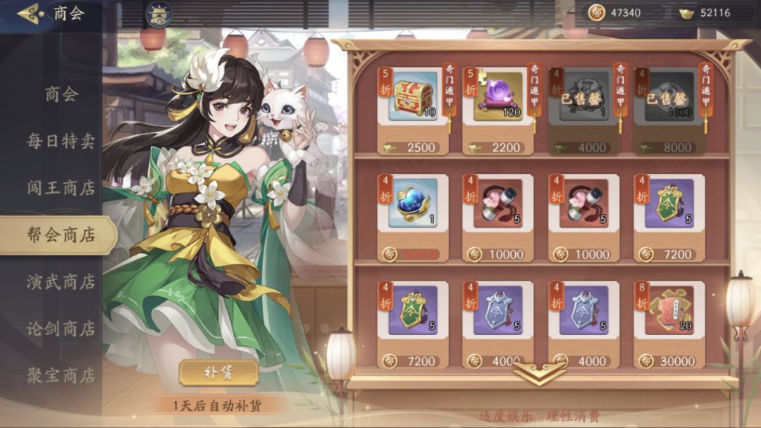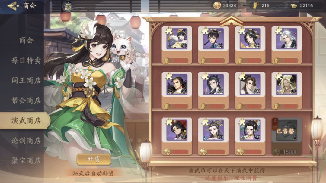 聚宝商店:每星期刷新的三折经脉全买,有多余的再考虑买核心大侠。