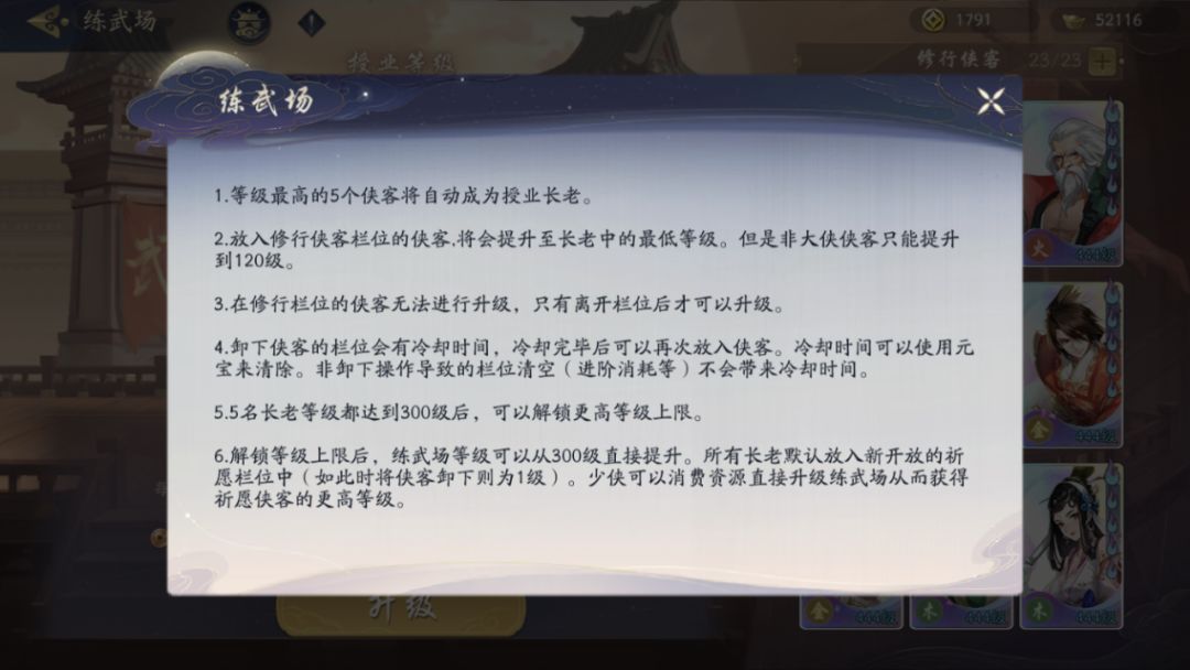 4. 练武场:这个就没什么好说的了,我直接搬运游戏里的说明,这里偷个懒。
