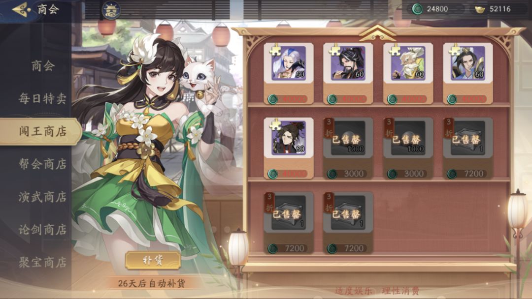 演武商店:每个月刷新的3折天工令必买,多余的资源换四系辅助自行考虑选哪个。演武商店有两种货币,一种是日常能获取的,另一个是限时开启的主要对应阴阳卡的兑换。