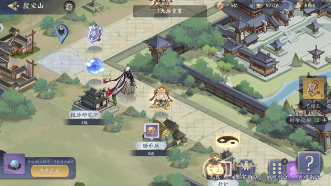 9. 聚宝山:每天送10次摇骰子次数,可点击剩余投掷用50元宝买满,推荐每天买满,性价比极高。