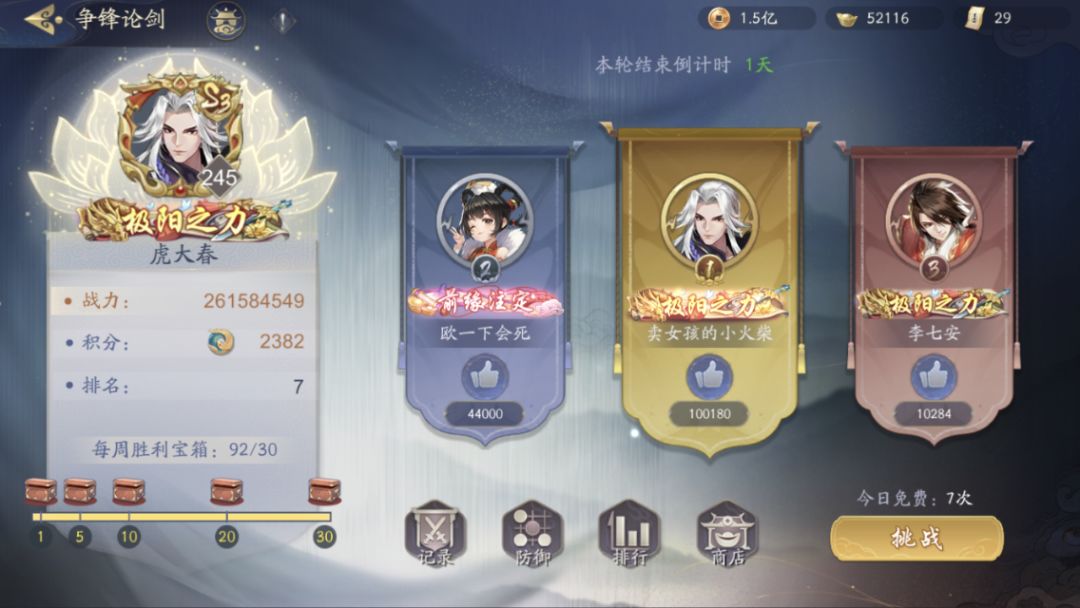 14. 侠客试炼:每期都不一样,这里就不详细介绍了,自行安排阵容,用你最强的阵容干就完事了。