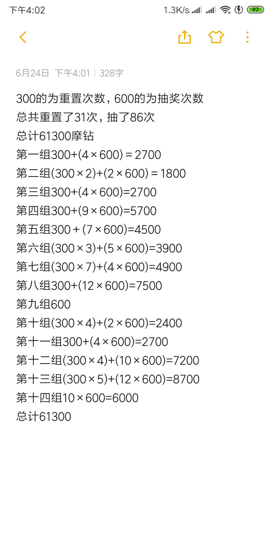 楼主是后面脸比较黑可能也有些漏的重置次数,反正只多不少基本6w左右都可以拿下了,如果欧皇请当我没说![[嗒啦啦2_哈哈]](https://img-tc.tapimg.com/market/images/1bbca193685a619674d8260ad0ed7455.gif)