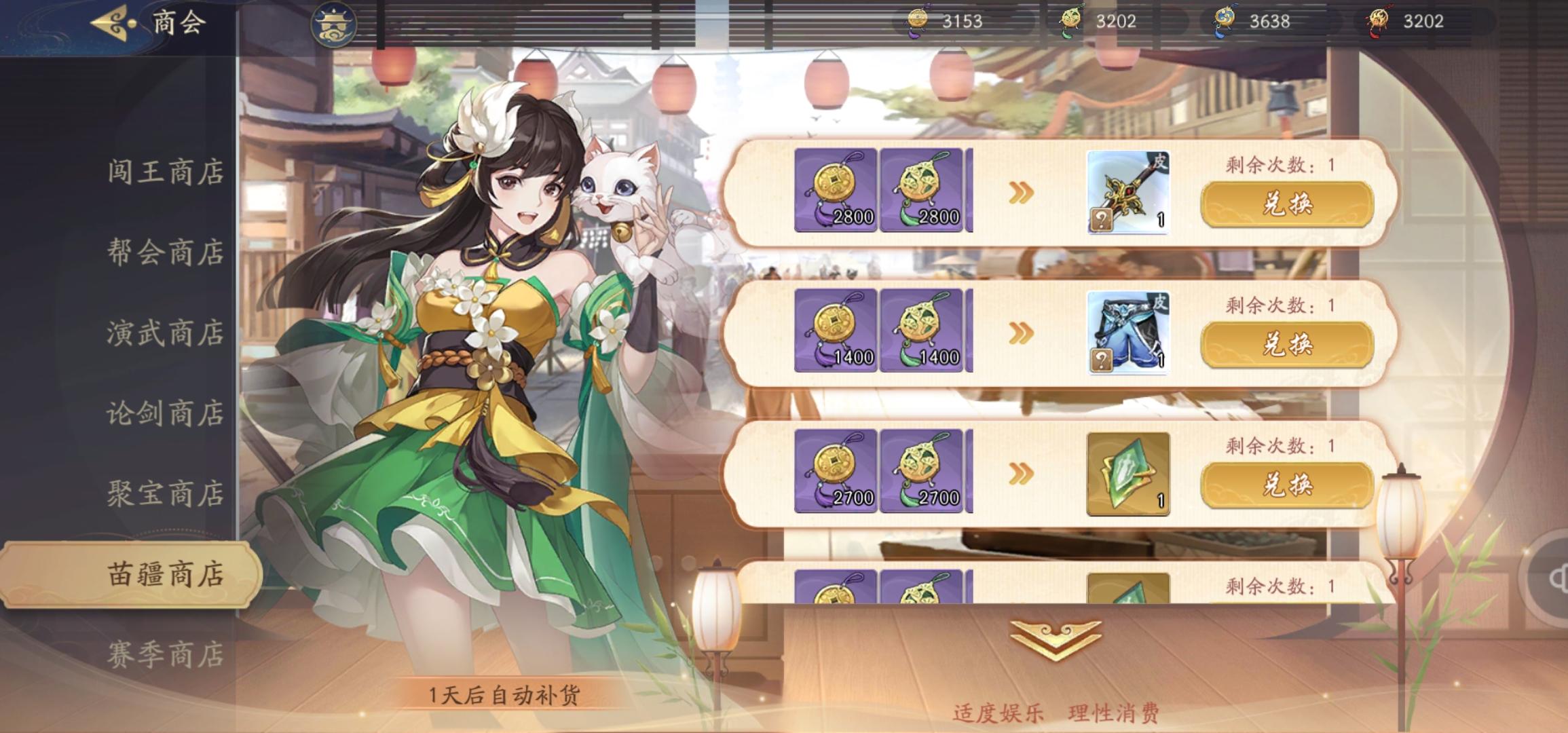 苗疆觅宝第二赛季15天同步开启,占领各系矿洞获取币,这里是换取白色阵营武器的不二选择,还有玄地天阶武器石头可以换,(这里建议换地天石头)每周都会更新武器。