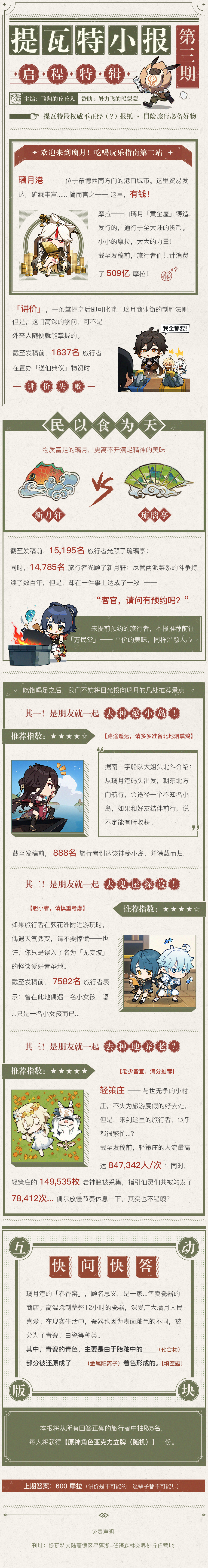 Olah~旅行者们,提瓦特小报第三期发售啦!