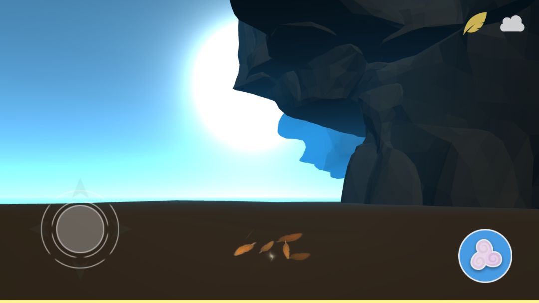 到第二关是不要动,回头看,左边哪里有个窟窿,用羽毛精灵跳到石头上,收到一个落脚地,然后就可以一直往前走,一定要贴着石头走,到那个桥那里往上再跳跳,不然是过不去的,然后到底下找到那个石柱子,在它前面有一个缝隙,用羽毛精灵跳上去,就能出去了,然后你就可以看到蓝色太阳了(不过到地下后是上不去了,只能传送精灵传送,没有这个精灵的我还是不推荐,不然你只能退了重新来)。