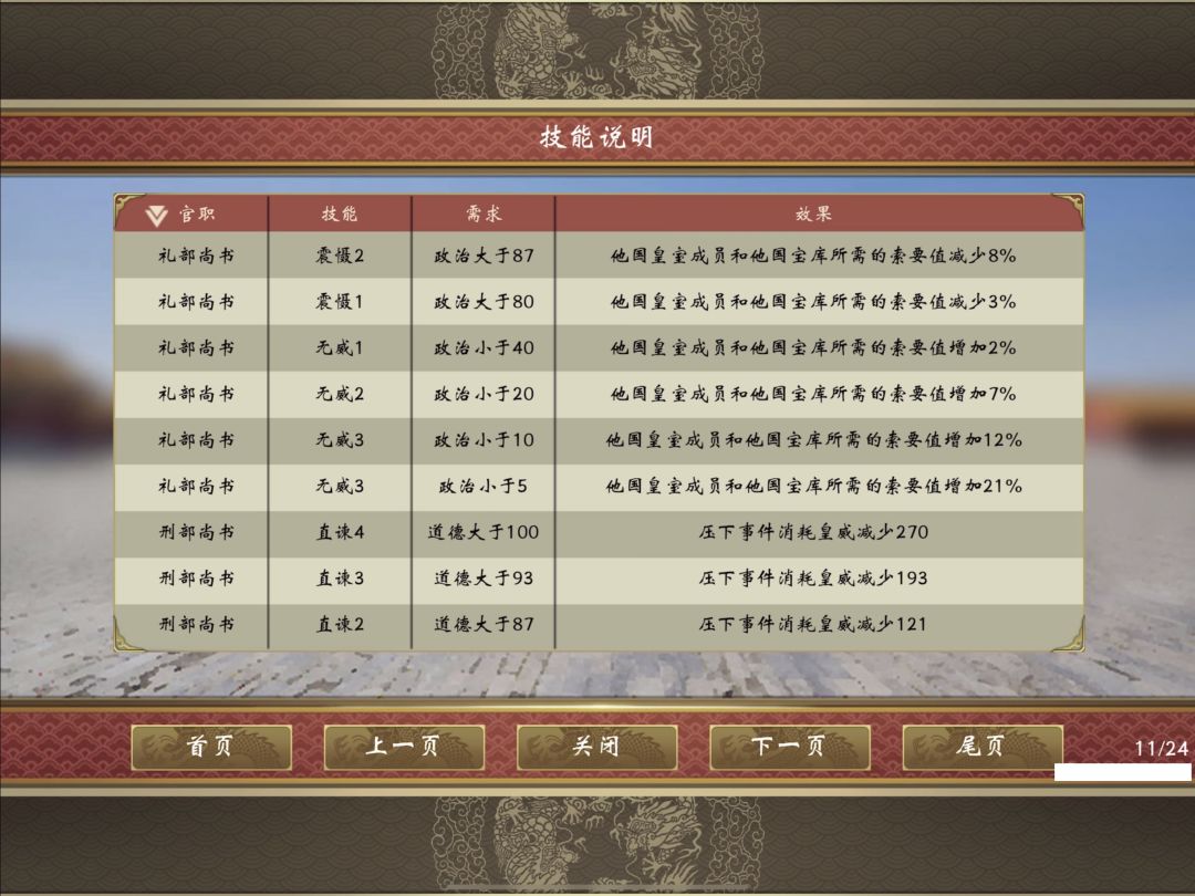 国士无双:主要用到的是皇威>800后,官员四级技能的基础上效果加70%;丞相,将军,和太傅,如果满足了第二项数值要求,四级技能效果再加30%;开局带了汉初三杰,如果派去当将领的话部队攻+1血+1,我用的主要是韩信担任中央将军,可以加五级技能发动率, 张良和萧何数值非常高,可以当工部/吏部尚书。
