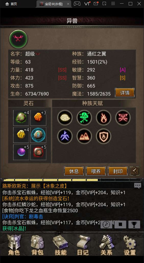 灵石前期尽量带防御.生命.攻击灵石,属性灵石可以针对boss特技来弥补抗性(宠物会死的情况下)