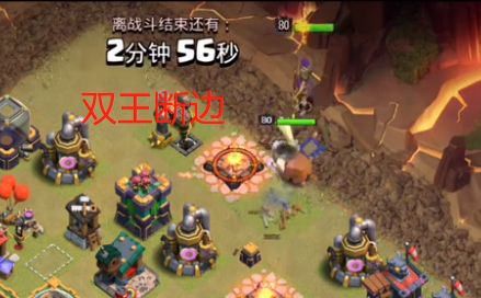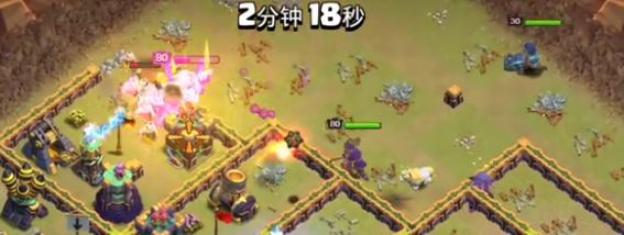 这个时候拉回左上角,在墙边放个超炸,给蛮王开路