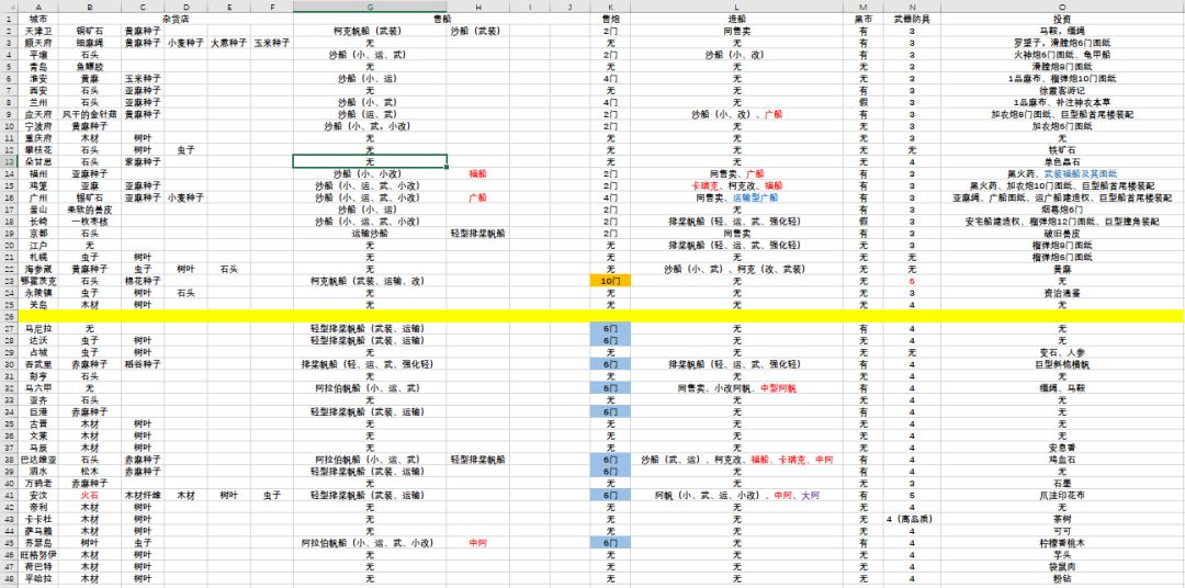 说明:目前只统计了亚太部分的,后面不定期更新关于武器防具部分内容并不准确,只是大概反映该城市出售装备的最高等级