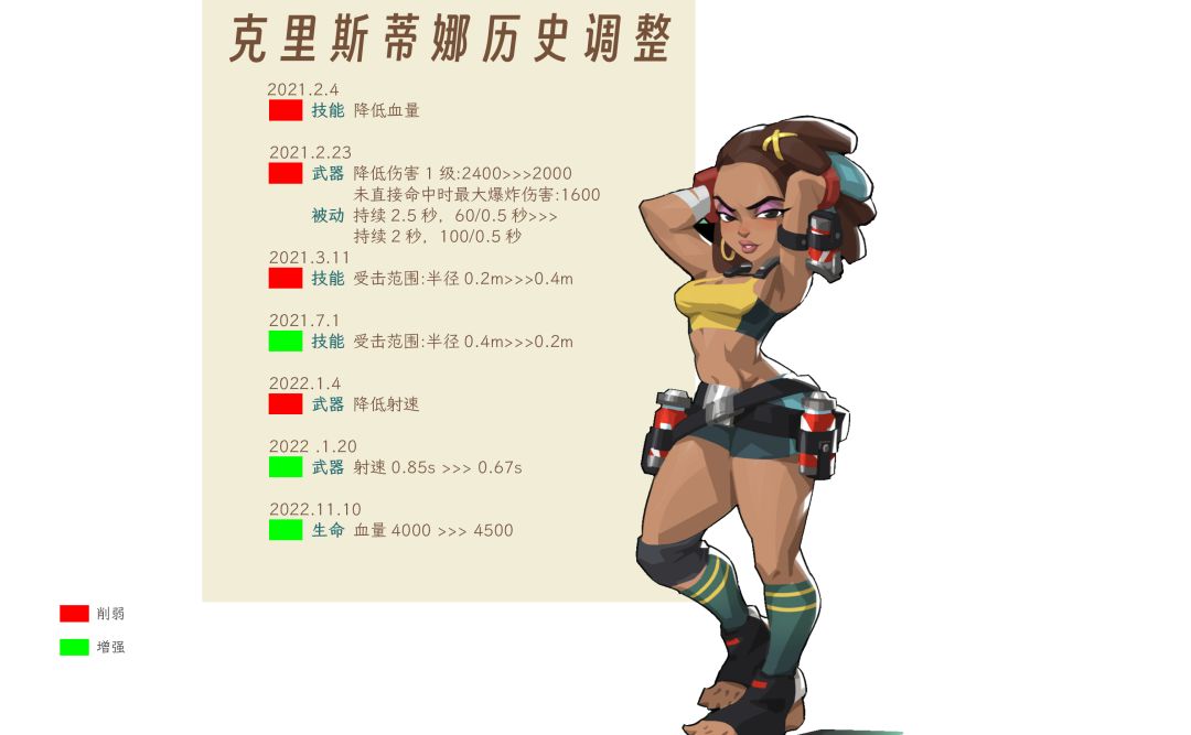 克里斯蒂娜有几次关于溅射伤害和子弹弹射的调整,但找不到帖子,所以没有写在图中