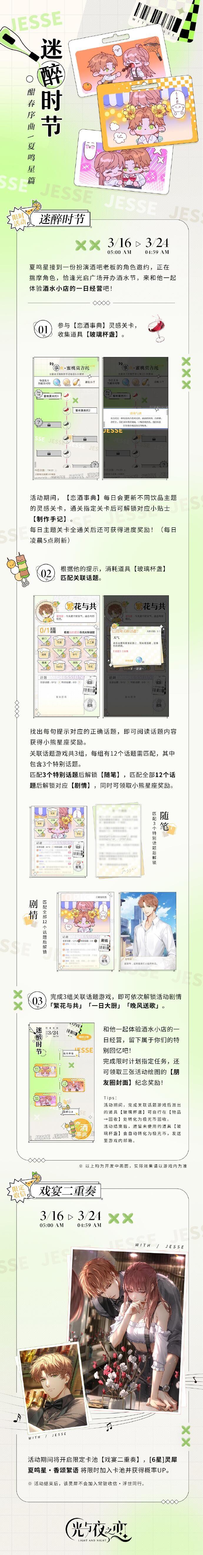 活动说明:夏鸣星接到一份扮演邀请 ,正在揣摩角色,恰逢光启广场开办酒水节,来和他一起体验酒水小店的一日经营吧!