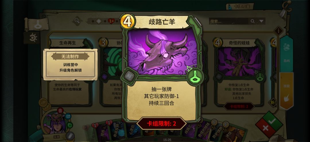 然后就是关于怎么坑人建议留一张诱饵和一张精神壁垒以备不时之需,其他牌就在收益最高的岛上用就行,要注意的是歧路亡羊一定要在自己安全的情况下用。
